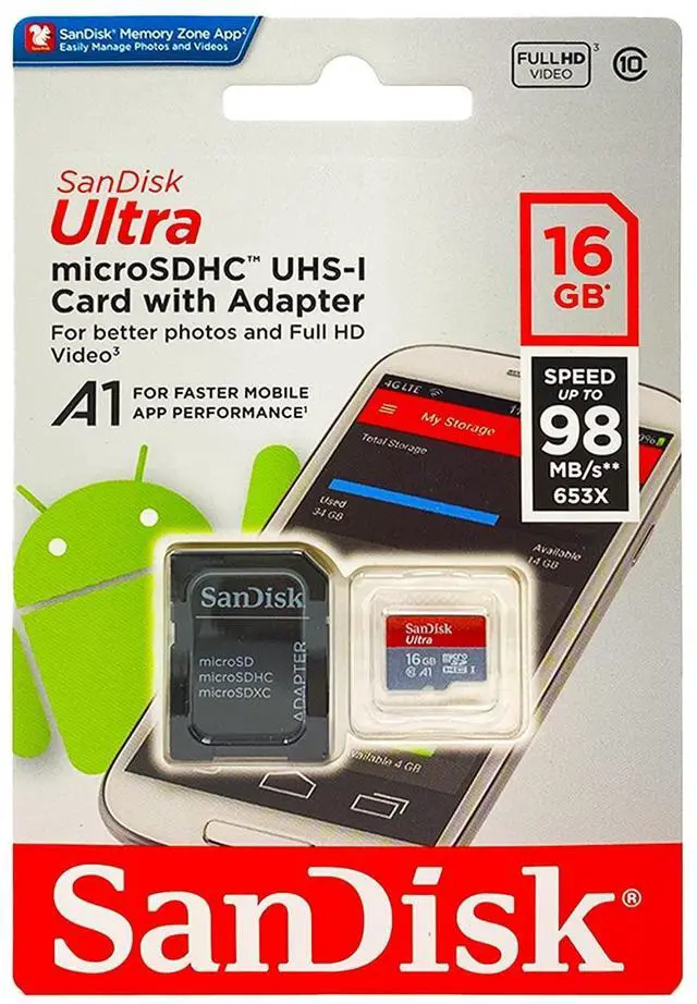 Sandisk Ultra - Flash Memory Card - 16 GB - MicroSDHC UHS-I (SDSQUNC-016G-AN6IA)