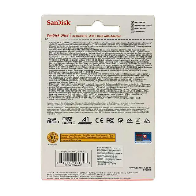 Sandisk Ultra - Flash memory card - 16 GB - MicroSDHC UHS-I (SDSQUNC-016G-AN6IA)