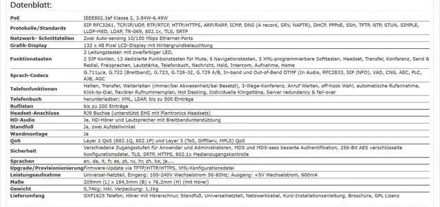 13248 pixel backlit graphical LCD display. 2 dual-color line keys (with 2 SIP accounts and up to 2 call appearances), 3 XML programmable context-sensitive soft keys, 3-way conference HD wideband audio, superb full-duplex hands-free speakerphone with advanced acoustic echo cancellation and excellent double-talk performance.