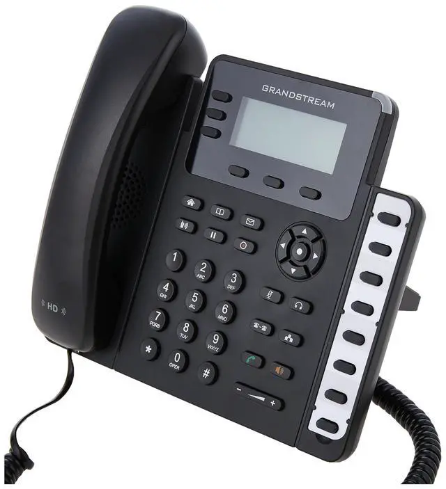 The GXP1630 is a powerful Gigabit IP phone designed for small businesses. This Linux-based, 3-line IP Phone model includes 8 BLF keys and 4-way conferencing to keep workers in-touch and productive. A 132x64 backlit LCD screen creates a clear display for easy viewing. Additional features such as dual HD audio, multi-language support, integrated PoE and 3 XML programmable allow the GXP1630 to be a high quality, versatile and dependable office phone. As all Grand stream IP phones do, the GXP1630 features state-of-the-art security encryption technology (SRTP and TLS). The GXP1630 supports a variety of automated provisioning options, including zero-configuration with Grand stream's UCM series IP PBXs, encrypted XML files and TR-069, to make mass deployment extremely easy.