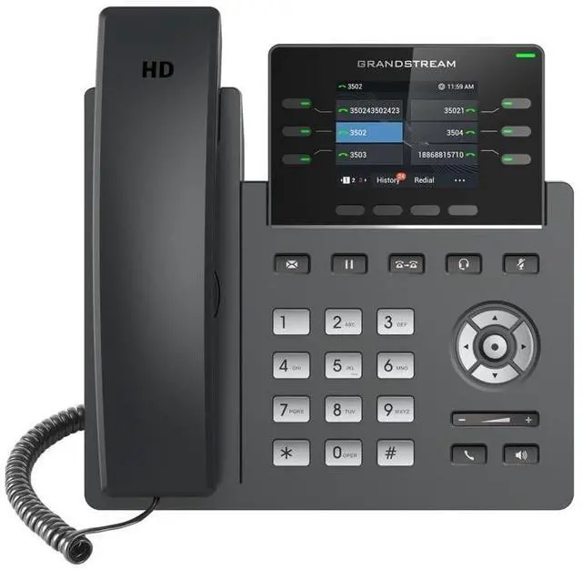 The GRP2613 is a powerful 6-line carrier-quality IP phone designed with zero contact provisioning for massive deployment and easy management. It features a sleek design and next-generation feature set, including 24 versatile virtual keys (VPK), built-in Wi-Fi (GRP2613W), two Gigabit ports, a color LCD display with interchangeable faceplates for easy logo customization, and more. The GRP Series includes carrier-quality security features to provide enterprise-level security, including secure boot, dual firmware images, and encrypted data storage. For cloud provisioning and centralized management, the GRP2613 supports Grandstream's Device Management System (GDMS) which provides a centralized interface for configuring, provisioning, managing and monitoring Grandstream endpoint deployments.
