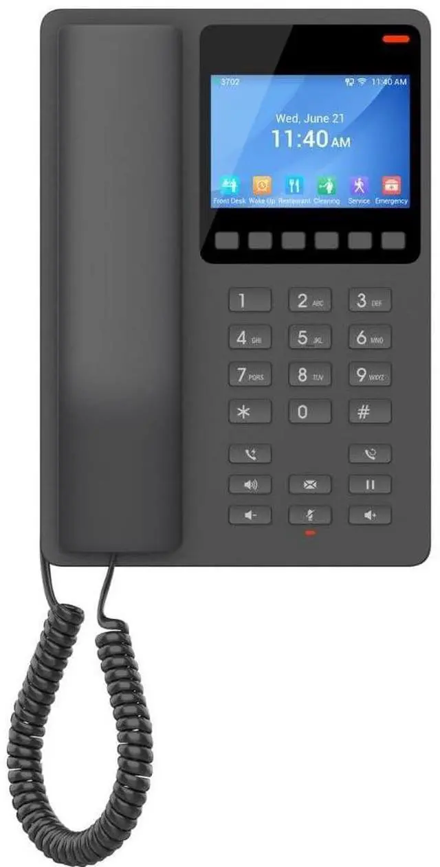 The GHP630 (W) & GHP631 (W) include an HD speaker on the handset, 2 SIP accounts/lines, 10 speed dial keys and 6 context-sensitive soft keys and includes 2 models with integrated dual-band Wi-Fi 6 support (GHP630W and GHP631W). Compact Hotel Phones with color LCD Ideal for Hotel Deployments and Other Similar Environments