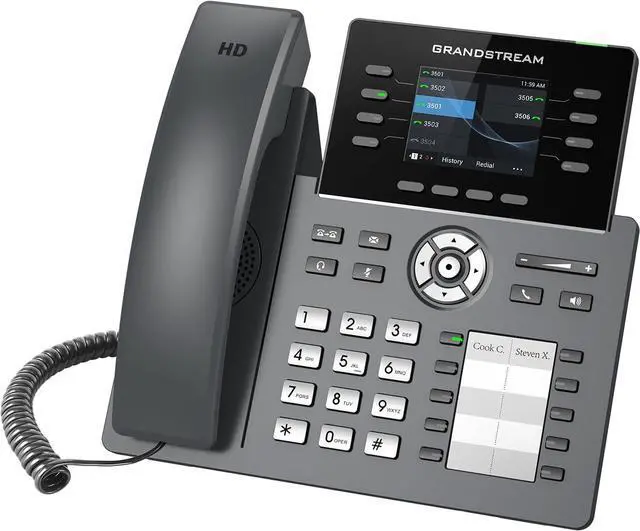 The GRP2634 features 32 virtual multi-purpose keys (VPK), 10 multipurpose keys (MPK), integrated Wi-Fi, Bluetooth support, a color LCD with swappable face plates for easy logo customization and more, and is supported by Grandstreams Device Management System (GDMS).