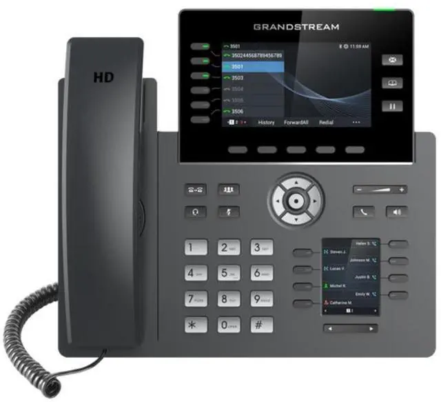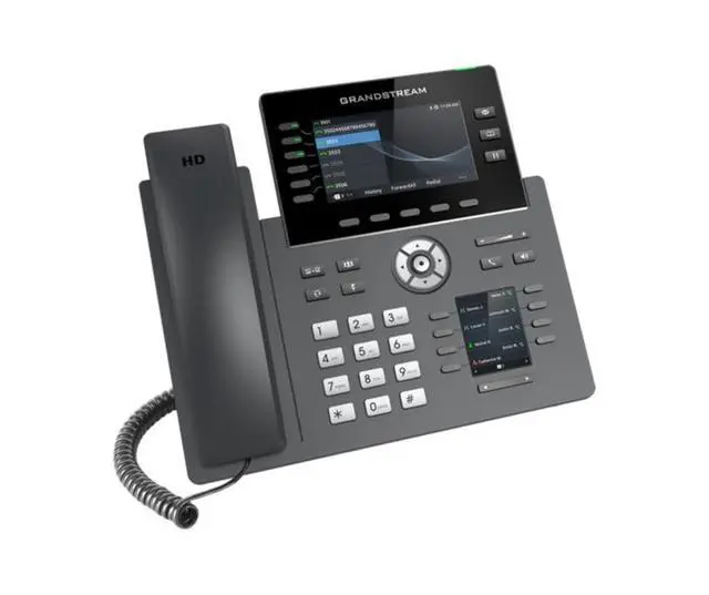 GRP26166-Line Professional IP Phone Designed for Mass Deployment and Easy ManagementThe GRP2616 features 48 virutal multi-purpose keys (VPKs), integrated Wi-Fi, Bluetooth support, a 4.3 inch color LCD with swappable face plates for easy logo customization, additional 2.4 inch display screen, and is supported by Grandstreams Device Management System (GDMS). FEATURES HD audio, handset and speakerphone with support for wide-band audio 10 line keys with up to 5 SIP accounts 40 built-in digital BLF keys; available extension module offers 40 BLF/speed dial keys per module Enterprise-level protection including secure boot, dual firmware images, and encrypted data storage integrated dual-band Wi-Fi 802.11 a/b/g/n/ac ( 2.4G hz & 5Ghz) Dual switched auto-sensing 10/100/1000 Mbps Gigabit Ethernet ports with integrated PoE Swappable face plates to allow for easy logo customization Integrated Bluetooth