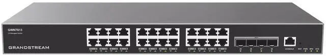 The GWN7813 is a Layer 3 managed network switch that allow medium-to-large enterprises to build scalable, secure, high performance and smart business networks that are fully manageable. It supports advanced VLAN for flexible and sophisticated traffic segmentation, advanced QoS for prioritization of network traffic, IGMP/MLD Snooping for network performance optimization, and comprehensive security capabilities against potential attacks. The GWN7813 can be managed in a number of ways, including the local Web user interface of the GWN7813 switch and CLI, the command-line interface. The series is also supported by GWN series routers, GDMS Networking and GWN Manager, Grandstreams cloud and on-premise network management platform.