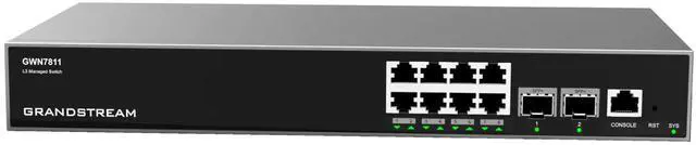 Hubs and Ports model Grandstream GWN7811 Manageable Layer Switch 3. Ports: 8x GbE RJ45, 2x SFP+, fanless