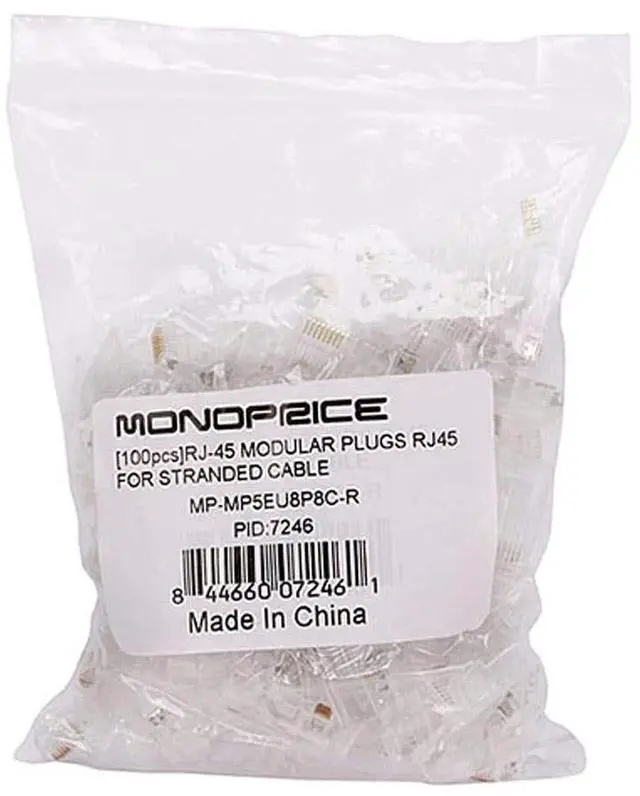 Monoprice 8P8C RJ45 Modular Plugs for Stranded Cat5/Cat5e Ethernet Cable, 100 pcs/Pack