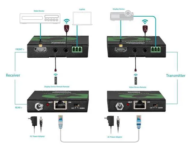 Features: Supports HDCP 2. 2 Supports resolutions up to 4K@60Hz Transmits 4K video to distances up to 35 meters Transmits 1080p video to distances up to 70 meters Supports the Power over Cable (Pock) feature Supports IR and RS232 extension IR accessories not included Full