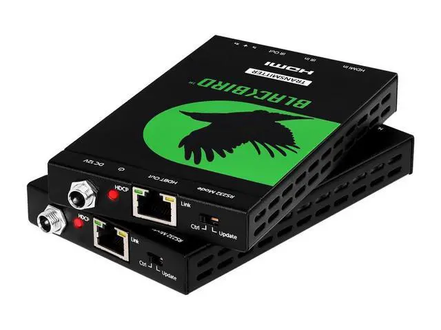 Blackbird 4K Pro DBase Extender Kit, IR, 70m with Pock, RS232, HDCP 2. 2 The Blackbird trade; 4K Pro HDBaseT Extender distributes HDMI signals over a single Cat6 cable to distances up to 70 meters. It supports the Pock feature, eliminating the need for power adapters on the receiver.