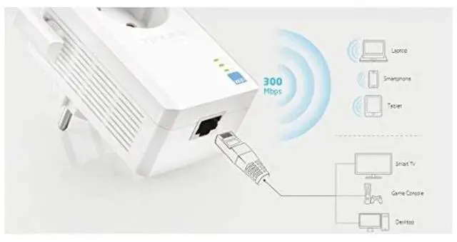 The TP-Link Wi-Fi Range Extender with AC Passthrough uses Wireless N technology and 2 external antennas to expand your home's existing Wi-Fi and minimize coverage "dead zones. " Stream video, place Internet calls, and game online without lag thanks to the range extender's 300 megabits per second speed. Its built-in power socket keeps your outlet free for other uses, and an Ethernet port allows the extender to connect wired devices like smart TVs and gaming consoles to your Wi-Fi.