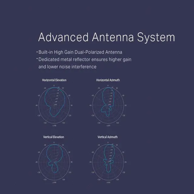 Advanced Antenna SystemBuilt-in High Gain Dual-Polarized Antenna and dedicated metal reflection ensures higher gain and lower noise interference. High Power High SensitivityIn advanced¸ high power Tx (up to 27dBm/500mw) and high sensitivity Rx (up to -95dBm) radio front-end design breaks down the barriers of traditional Wi-Fi transmission range¸ making CPE210 an ideal product for outdoor wireless networking applications.