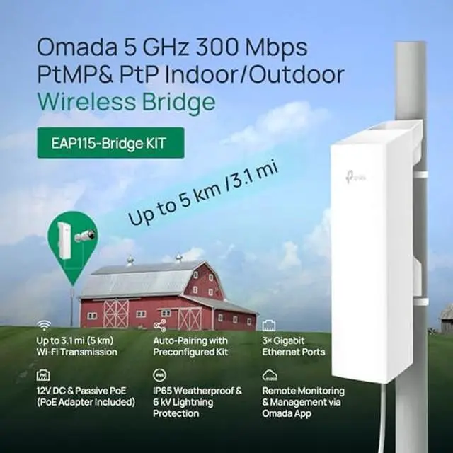 : Utilize 5GHz, Ideal for long-range wireless transmission up to 3 miles, 5km