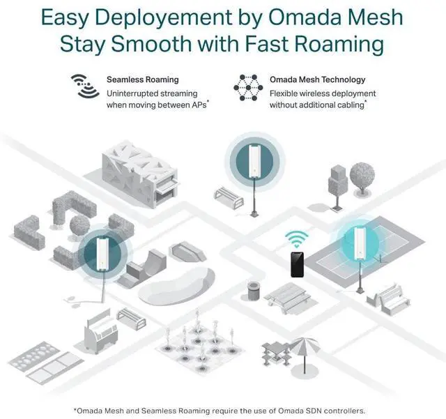 : Supports Mesh WiFi, Seamless Roaming*(Omada Mesh Seamless Roaming require the use of Omada SDN controller