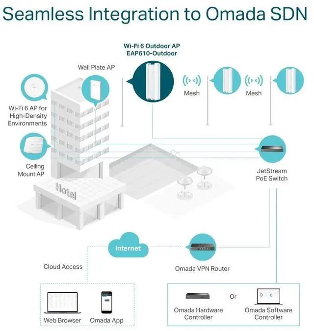 : Omada's Software Defined Networking (SDN) solution integrates network devices including access points, switches, gateways with multiple control options offered - Hardware, Software or cloud-based. Standalone mode also applies