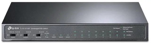 TP-Link TL-SL1311MP 8 Port 10/100Mbps Fast Ethernet PoE Switch 8 PoE+ Ports 124W, w/ 2 Uplink Gigabit Ports + 1 SFP Port PoE Recovery Extend & Isolation Mode