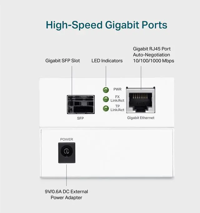 The TL-MC200 is a media converter designed to convert between 1000BASE-SX/LX fiber and 10/100/1000Base-T copper media. It easily extends the distance of an existing gigabit network via fiber optic when integrated with the SFP Module. The TL-MC200 applies the IEEE 802.3 ab 1000Base-T & IEEE 802.3 z 1000Base-SX/LX standards as part of its intended use with multi-mode/single-mode SFP Module. Long-range point-to-point connections are easily built with gigabit fiber converters, making them ideal for network connections across multiple buildings, for remote surveillance and automated factory equipment.
