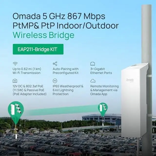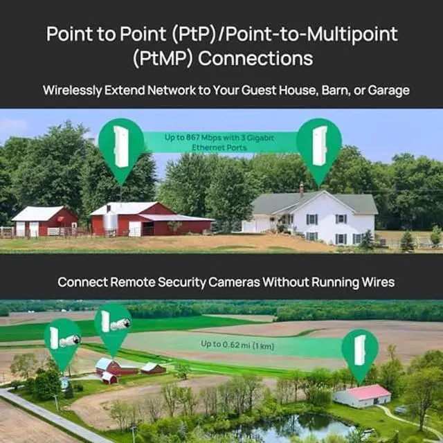 : Utilize 5GHz, Ideal for long-range wireless transmission up to 0.6 mile, 1km