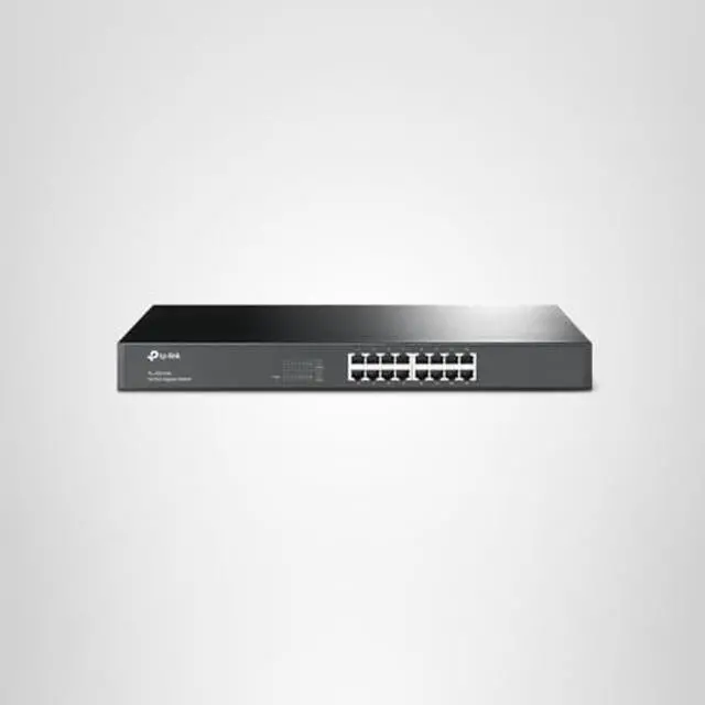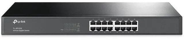 Diagnostic LED Indicators Easily monitor your network - Diagnostic LED lights on the front panel display the information of power, link/activity, and speed - allowing you to quickly detect and correct problems on the network. SpecificationsStandard 19-inch rack-mountable steel case32Gbps Switching Capacity, 8K MAC address table, 10KB Jumbo Frame, 4MB Buffer Memory 100% Data filtering rate eliminates all error packets Support MAC address auto-learning and auto-aging Support the port N-Way Auto-Negotiation, Store and Forward Fanless desgin to keep a quiet environment Support 100-240V power supplyWhat's in the Box16-Port Gigabit Switch Power Adapter User GuideTP-LINK Unmanaged Switches Series Which Unmanaged Switch is Right for Me? TL-SG1005D TL-SG1008D TL-SG105 TL-SG108 TL-SG1016DTL-SG1024D TL-SG1016 TL-SG1024Product Name 5-Port Gigabit Desktop Switch 8-Port Gigabit Desktop Switch 5-Port Gigabit Desktop Switch 8-Port Gigabit Desktop Switch 16-Port Gigabit Desktop/Rackmount Switch 24-Port Gigabit Desktop/Rackmount Switch 16-Port Gigabit Rackmount Switch 24-Port Gigabit Rackmount Switch Case Material Plastic Plastic Steel Steel Steel Steel Steel Steel Port Number 5 8 5 8 16 24 16 24 Size Desktop Desktop Desktop Desktop 13-inch 13-inch 19-inch 19-inch QoS - - - - - - IGMP Snooping - - - - - - - AUTO MDI/MDIX IEEE 802.3X Flow Control Power Saving Plug and Play From the ManufacturerThe TL-SG1016 16-Port Gigabit rack-mount switch provides an easy way to make the transition to Gigabit Ethernet.
