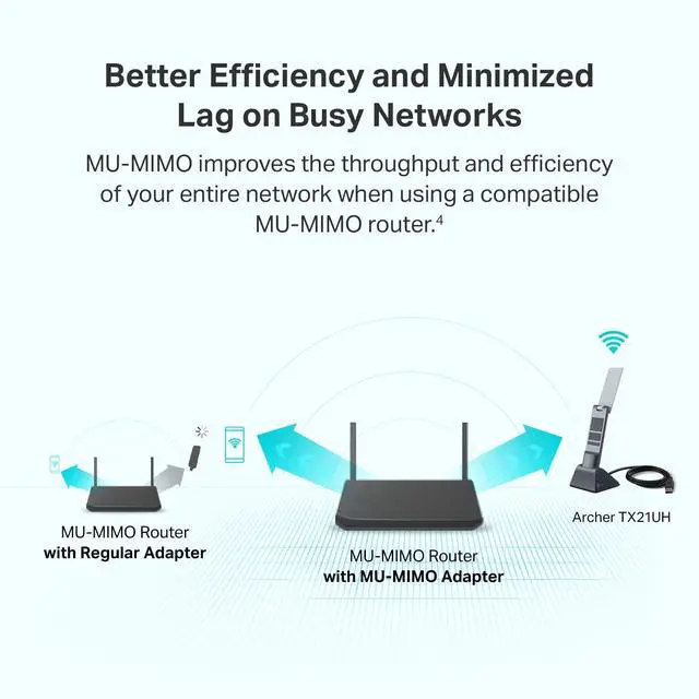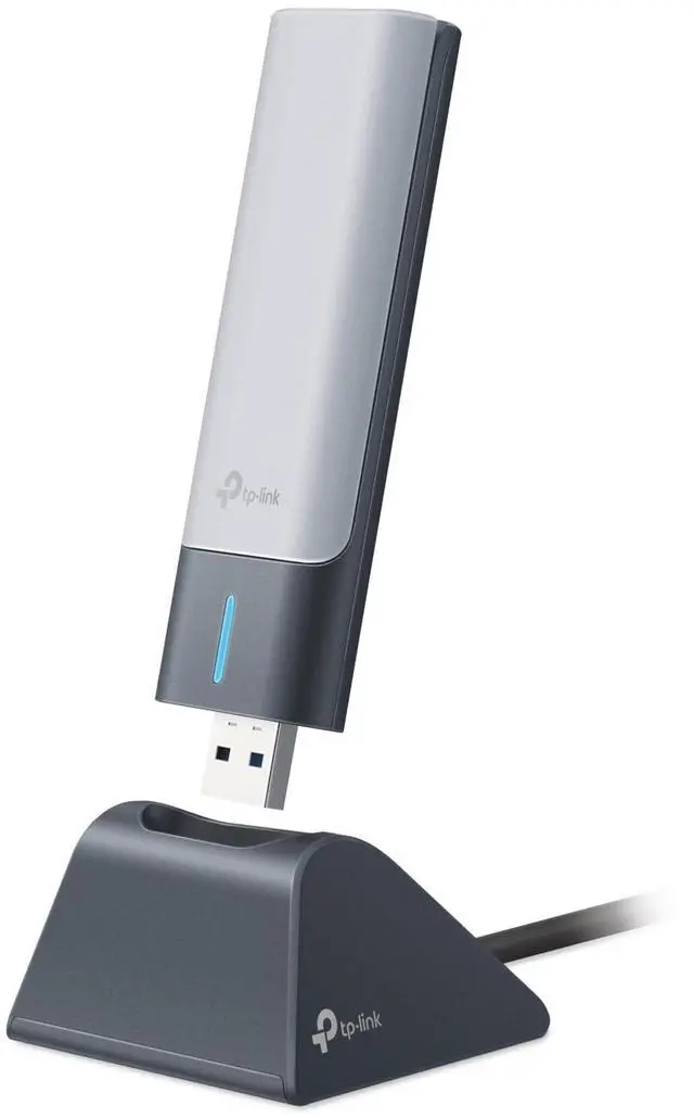 TP-Link AX1800 WiFi 6 USB Adapter for Desktop PC (Archer TX21UH) Wireless Network Adapter with 2.4GH z, 5GHz, MU-MIMO, OFDMA, High Gain Dual Band 5dBi Antenna, WPA3, Supports Windows 11/10High Speed, Dual Band WiFiThe Archer TX21UH grants your PC access to 802.11 ax technology while receiving WiFi signals on two separate bands, boosting speeds up to 1.8 Gbps (up to 574 Mbps on the 2.4GH z band and 1201 Mbps on the 5GHz band). Granting you better networking experience for all your online needs.