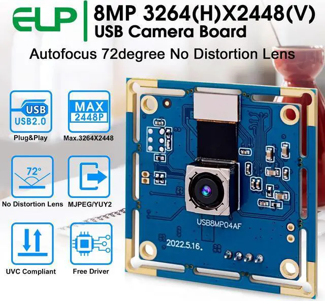 Frame Rate: Support 3264x2448@15fps,3200X2440@25fps,800X600@30fps and YUV video streaming.High speed USB2.0 4K usb camera with Parameters changeable (Brightness, Contrast, Saturation, White Balance, Gamma, Definition, Exposure...)