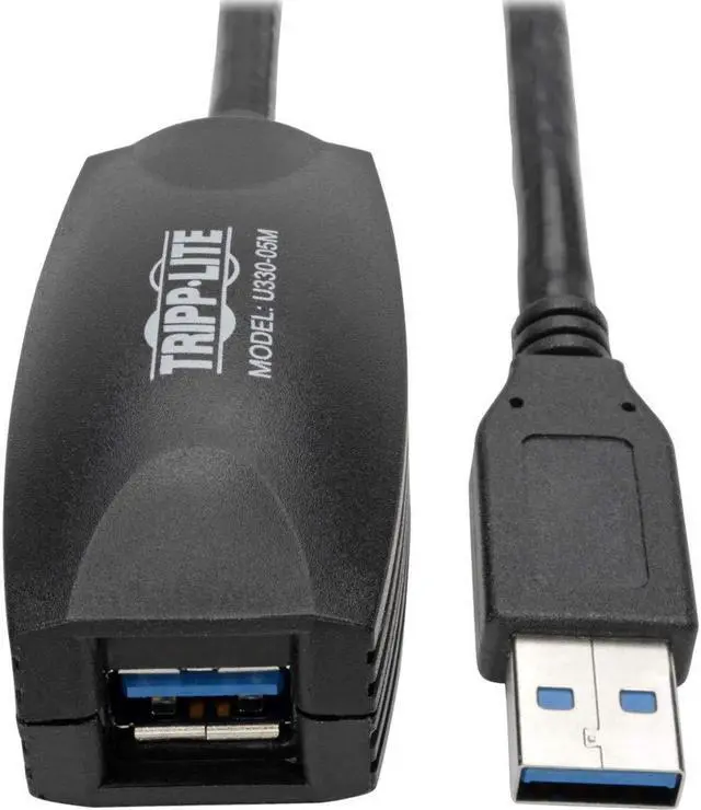 Tripp Lite's 16-Feet. USB 3.0 active extension cable is a bus powered extension cable that can be used to increase the length of a device cable without the worry of signal loss and potential performance problems. USB limits a cable's length to 16ft. Any length above 16 feet requires the use of an active cable such as this one. This cable has a signal booster built in. The cable must be plugged directly into a USB port (either on the PC or a hub). Use a standard 6-Feet 10-Feet or 15-Feet USB 3.0 A-B cable to reach the desired distance.