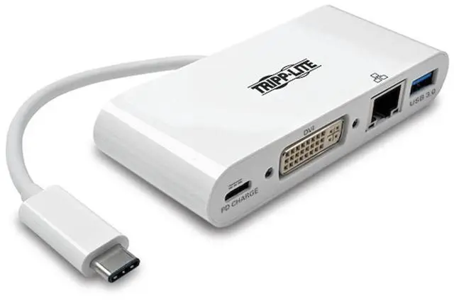 Tripp Lite USB C to DVI Multiport Video Adapter Converter w/ USB-A Hub, USB-C PD Charging, Gigabit Ethernet Port, USB T