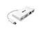 The USB-C charging port supports power input up to 20V 3A (60W). It powers the device that the U444-06N-VGU-C is plugged into, as well as a peripheral plugged into its USB-A port, by connecting the charging port to a USB-C wall charger.