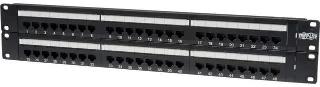N252-048 Main Features Ideal solution for managing Cat6 cable patching in high-density IT environments 48 Cat6 RJ45 ports and 110-type punchdown termination 19 in. rackmount-ready, 2U ( 3.50" ) EIA/TIA 2/32 spacing Ports clearly numbered on both front and back to identify cable runs Labels on front enable each port to be named for easy reference Federal Trade Agreements Act (TAA) compliant for GSA Schedule purchases