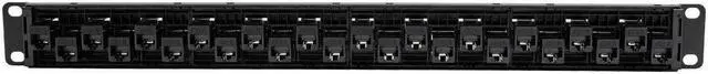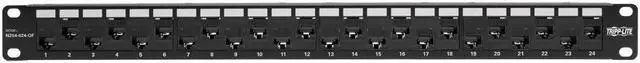 The N254-024-OF 24-Port 1U Rack-Mount Cat5e/6 Offset Feed-Through Patch Panel meets or exceeds Cat5e/6 specifications and works with USOC, T568A and T568B wiring to comply with industry standards. Its 24 RJ45 coupler jacks are staggered to prevent crosstalk and interference emanating from adjacent ports. Because any interference and line noise can slow down your network, reducing the risk by offsetting the RJ45 jacks in rows is of great importance. No 110 punch down termination is required. Just plug your Cat5e/6 cables into the 24 RJ45 coupler jacks on both sides of the panel.