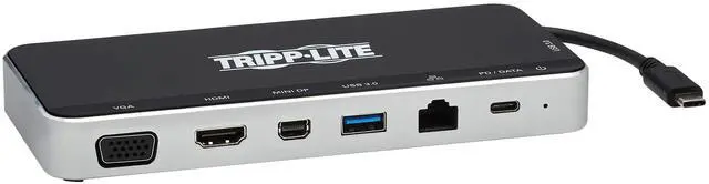 Note: Mac OS laptops or computers will only extend to one monitor. The other monitors will be mirrored. See the owners manual for various configurations and maximum resolutions. USB Ports Connect Keyboards, Thumb Drives and Other Peripherals A USB-A port and a USB-C port accept USB peripherals, such as flash drives, mice, keyboards and printers. Both support fast USB 3.2 Gen 1 data transfer rates up to 5 Gbps and are backward compatible with USB 2.0 and USB 1.1 devices. PD Charging Port Charges the Connected Notebook, Tablet or Other Device The USB-C Power Delivery port supports power output up to 20V 3A (60W), which is sufficient for charging and powering the connected source device, such as an Android smartphone or Chromebook. Just connect the devices AC wall charger to the USB-C PD port. This port, as mentioned above, can also be used for transferring data up to 5 Gbps. Accesses a Wired Gigabit Ethernet Network The RJ45 port offers access to a Gigabit Ethernet network when Wi-Fi is unavailable or when a wired connection offers faster speeds. Connect using a UTP cable (Tripp Lite N201-Series Cat6 cables sold separately), and enjoy true 10/100/1000 Mbps Ethernet speeds for fast data transfers.