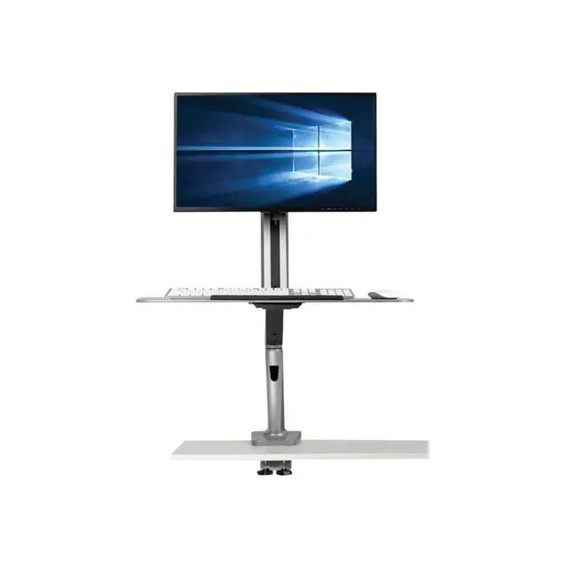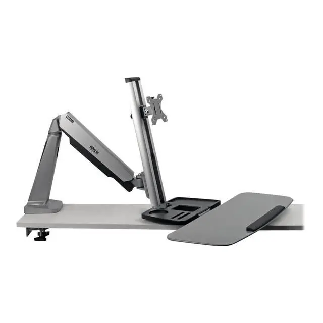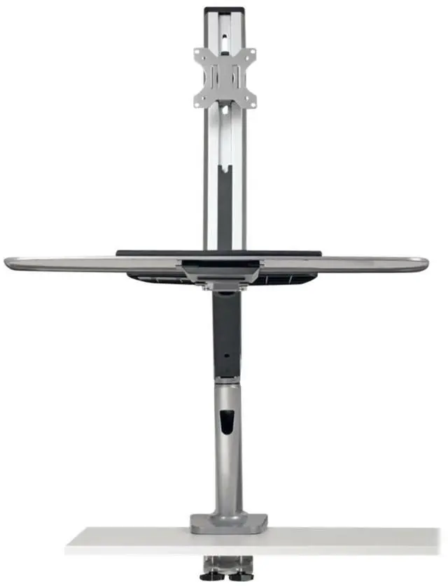 Single Touch: Just one touch is all it takes to adjust your workstations angles and heights to fit your comfort level. All sections move together for smooth transitions between sitting and standing modes. The full-motion arm tilts from -180 to +180 to give you plenty of flexibility in minimizing glare and providing comfortable viewing. It also rotates 360 degrees for viewing in portrait or landscape orientation. Increase or decrease tension using the included hex key to compensate for heavier or lighter loads. Versatile Mounting Options Require Minimal Desk Space: This sit-stand workstation offers two different mounting methods: desk clamp or grommet mount. For easy and convenient installation and removal, use the desk clamp mounting option. For a permanent mounting solution, use the grommet mounting option. Necessary mounting hardware is included. VESA-Compliant Mount Supports Up to 17.6 lb: The VESA-compliant single-arm mount fits most flat-panel monitors, televisions and other displays from 13 to 32 inches. Its compatible with 75 x 75 mm and 100 x 100 mm VESA mounting-hole patterns. Extra-Large Keyboard Tray Holds the