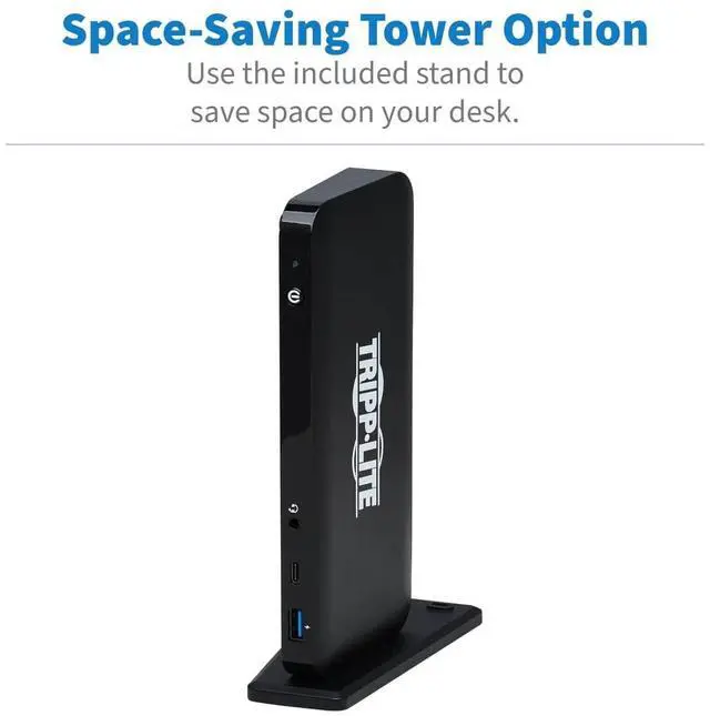 AND OTHER AUDIO EQUIPMENT: The USB-C docking station's 3.5 mm mini stereo jack is convenient for connecting speakers, headphones or a microphone to your workstation. You can listen to music or record the latest episode of your podcast. ANTI-THEFT LOCK PROTECTS THE USB-C DOCKING STATION WHEN YOU AREN'T AROUND: Connect a user-supplied computer/laptop security cable lock (not included) to this port to protect the dock against theft. READY TO USE RIGHT OUT OF THE PACKAGE: The plug-and-play USB-C dock is specifically designed for use with Windows laptops and other notebooks, smartphones, tablets and devices equipped with a USB-C or Thunderbolt 3 port. It requires no extra software to be downloaded or installed. Its compact footprint fits easily into your desk space without taking up much valuable room.