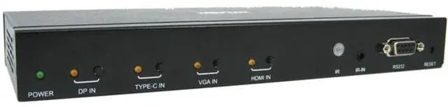 4-Port Multi-Format Presentation Switch Connects 4 Video Sources to One HDMI Display This presentation switch connects four separate source devices to your 4K television, projector or monitors HDMI input and switches between them. The B320-4X1-MH features HDMI, DisplayPort, USB-C and VGA + Audio inputs for connecting Windows laptops, cable boxes, media servers, Blu-ray players, video game consoles and other video sources. Switch from one source to another using the manual push buttons, RS-232 commands or the included remote control. Suitable for a Wide Range of Audio/Video Applications for Work or Play This switch is recommended anywhere a variety of video signals is transmitted to a hi-def display.
