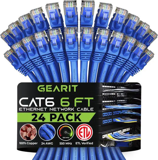 GearIT Cat 6 Ethernet Cable 6 ft (24-Pack) - Cat6 Patch Cable, Cat 6 Patch Cable, Cat6 Cable, Cat 6 Cable, Cat6 Ethernet Cable, Network Cable, Internet Cable - Blue 6 Feet