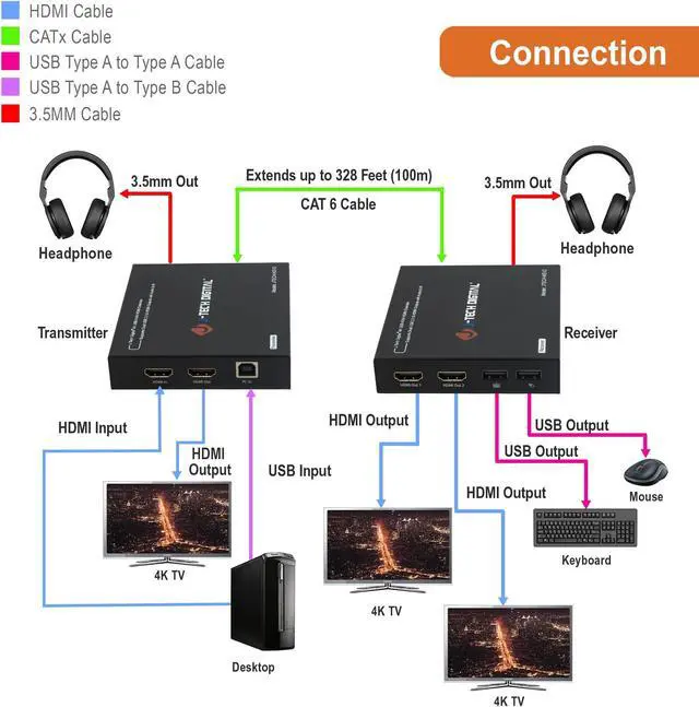 Transmission Distance- 328 FT / 100M over CAT6 Solid Copper