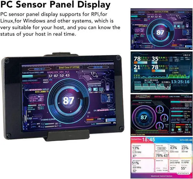 Support Multi System: PC sensor panel display supports for RPi, for Linux, for Windows and other systems, which is very suitable for your host, and you can know the status of your host in real time.