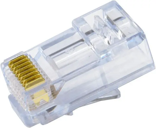 3 Prong Pin Design of True 24ct Gold Plating - All Simply45 Standard WE/SS RJ45 modular plugs use only 24ct gold plated 3-Prong pin design instead of a 2-Prong design as found on most other pass-through RJ45 modular plugs.