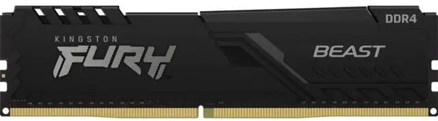 The Kingston FURY Beast DDR4 provides a powerful performance boost for gaming, video editing and rendering with speeds up to 3733MHz. This cost-effective upgrade is available in 2666MHz3733MHz speeds, CL1519 latencies, single module capacities of 4GB32GB, and kit capacities of 8GB128GB. It features Plug N Play automatic overclocking at 2666MHz and is both Intel XMP-ready and ready for AMD Ryzen. FURY Beast DDR4 stays cool with its stylish, low-profile heat spreader.