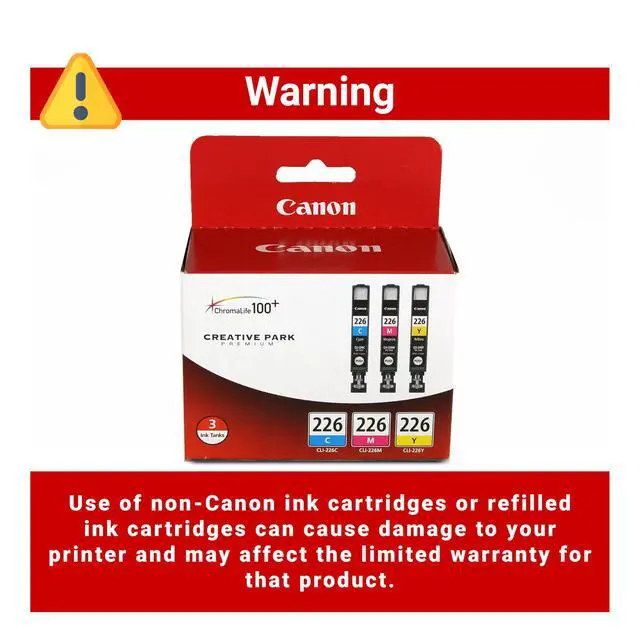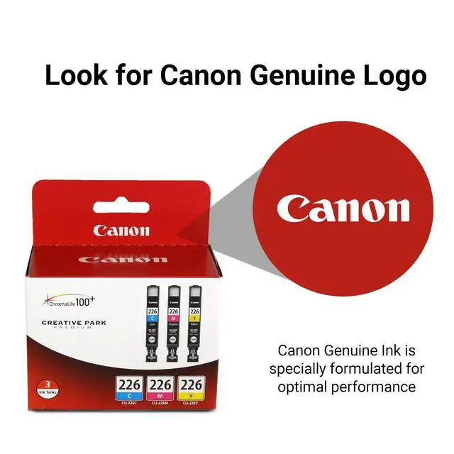 From the ManufacturerCanon CLI-226 3 Ink Combo Pack Genuine Canon QualityGenuine Canon inks and ink cartridges are designed, developed and manufactured in Japan. In other words, the entire process is centrally controlled and it makes the quality control simple and well-organized; and helps to maintain the quality of all genuine Canon inks at a high level. All genuine Canon ink cartridges are designed for your easy printing of your beautiful prints. Automatic Ink MonitoringGenuine Canon ink tank equips LED to tell the user that ink level is now low and soon to be depleted, so that the user can prepare the replacement in advance.