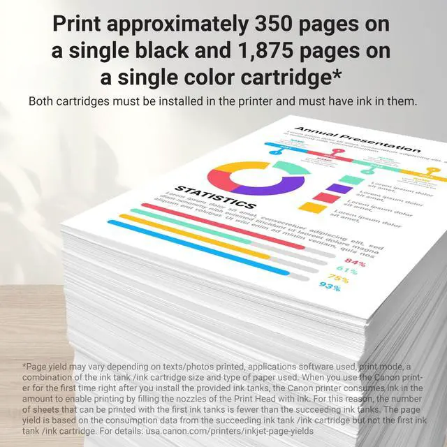 All genuine Canon ink cartridges are designed for your easy printing of your beautiful prints. Long-Lasting Beautiful PhotosIn order to provide longer-lasting and more beautiful vivid photo prints, Canon continues to develop genuine dye inks and genuine Canon photo papers specifically for PIXMA printers and take advantage of the superb printing ability of the "FINE" print head. ChromaLife100+ is a system to help preserve both long lasting beauty and durability of photos with the combination of genuine Canon dye inks and photo papers. Print Crisp TextWhen printing text or a document, pigment black ink takes a prominent role to help deliver crisp and sharp text and characters on plain paper.