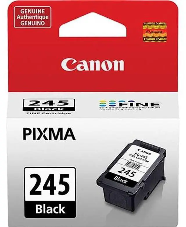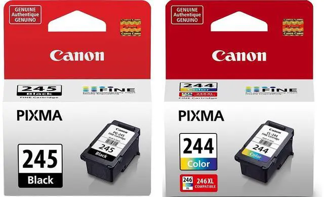 The Canon PG-245 Black Ink Cartridge features smudge-resistant ink. The cartridge yields 180 pages based on ISO standards. The Canon CL-244 Color Ink Cartridge is engineered to work on plain paper as well, so the graphics in your presentations and reports can stand out.