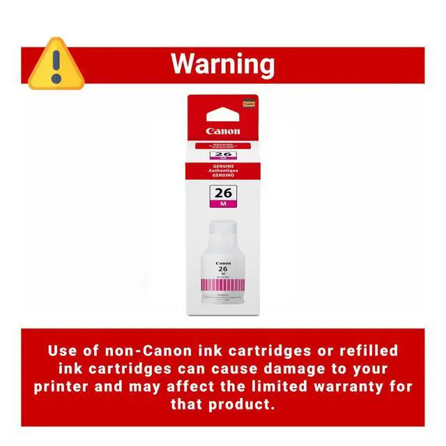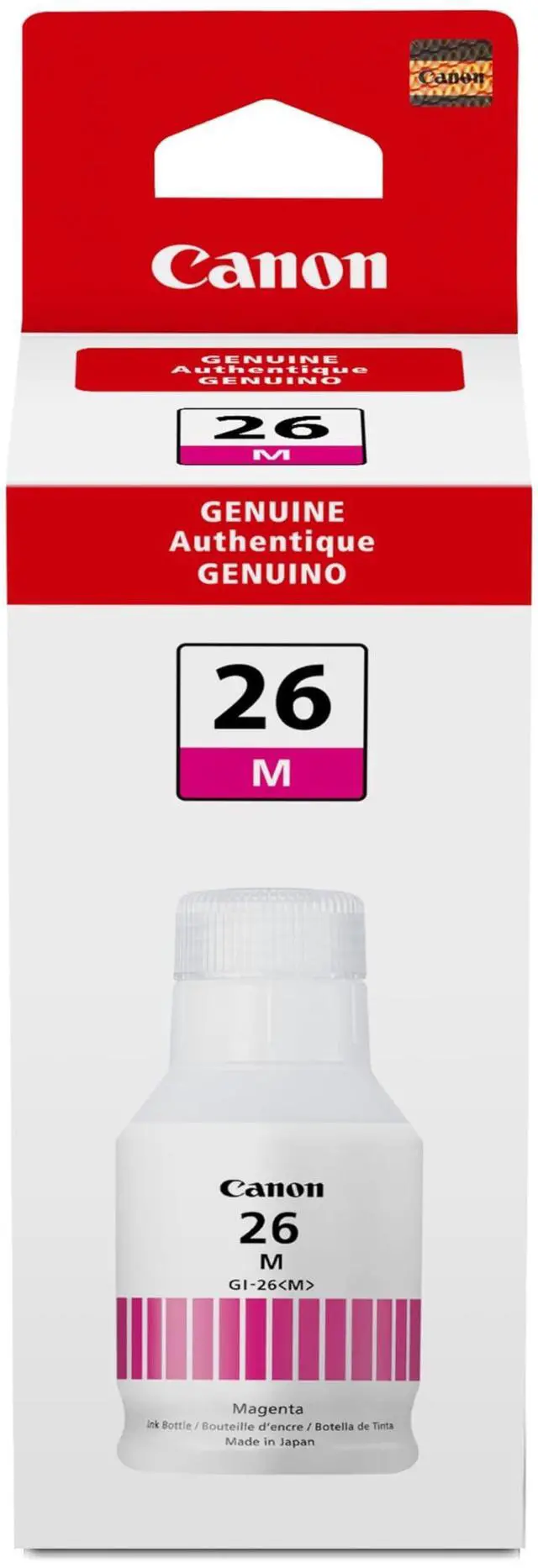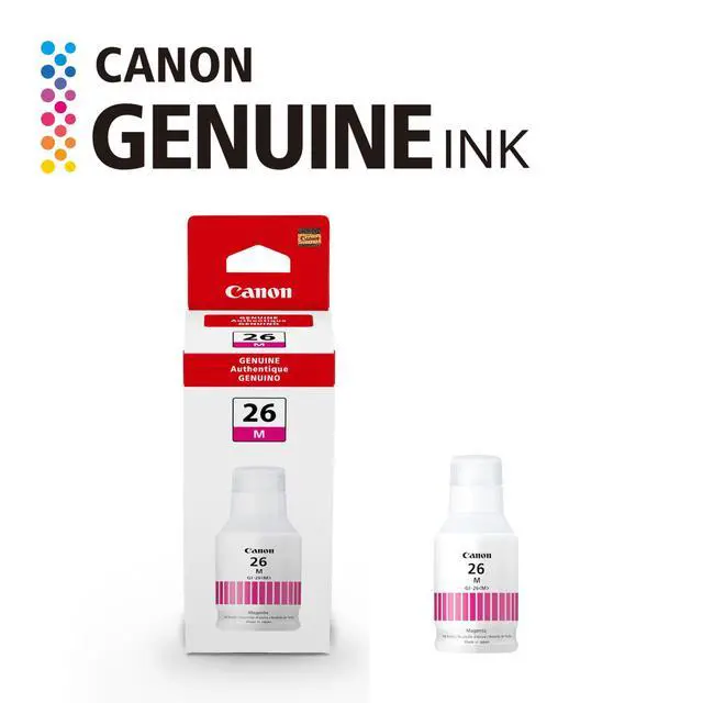 Canon Genuine GI-26 Pigment Magenta ink bottle is designed specifically for select Canon MegaTank printers.