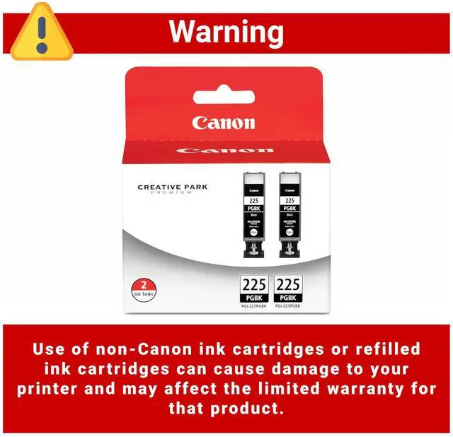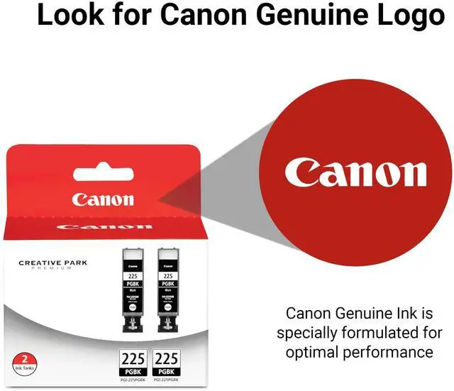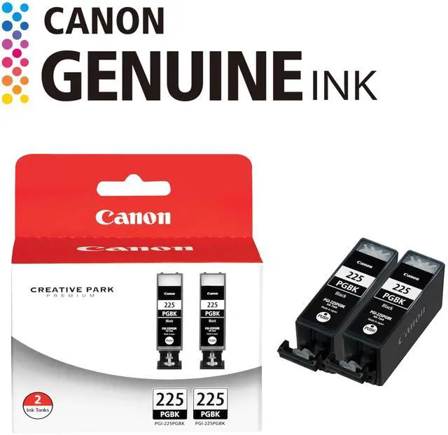 From the ManufacturerPGI-225 Pigment Black Ink Tank Twin Pack(View Larger. )Genuine Canon inks and ink cartridges are designed, developed, manufactured and packaged in Japan. In other words, the entire process is centrally controlled and it makes the quality control simple and well-organized; and helps to maintain the quality of all genuine Canon inks at a high level. All genuine Canon ink cartridges are designed for your easy printing of your beautiful prints. The molecular models illustrated here are conceptual and the print samples are simulatedWhen printing text or a document, pigment black ink takes a prominent role to help deliver crisp and sharp text and characters on plain paper.