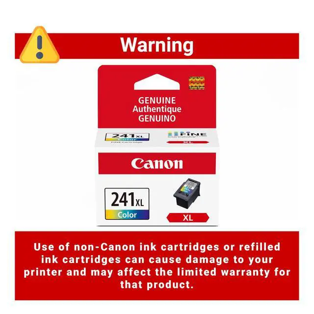 From the ManufacturerCL-241XL Color Ink Cartridge Genuine Canon QualityGenuine Canon inks and ink cartridges are designed, developed, manufactured and packaged in Japan. In other words, the entire process is centrally controlled and it makes the quality control simple and well-organized; and helps to maintain the quality of all genuine Canon inks at a high level. All genuine Canon ink cartridges are designed for your easy printing of your beautiful prints. CL-241XL FINE Cartridges Improved Print Quality & SpeedCanon has improved the 'FINE Cartridge', or integrated print head designed by utilizing FINE (Full-photolithography Inkjet Nozzle Engineering) technology, for higher print quality.