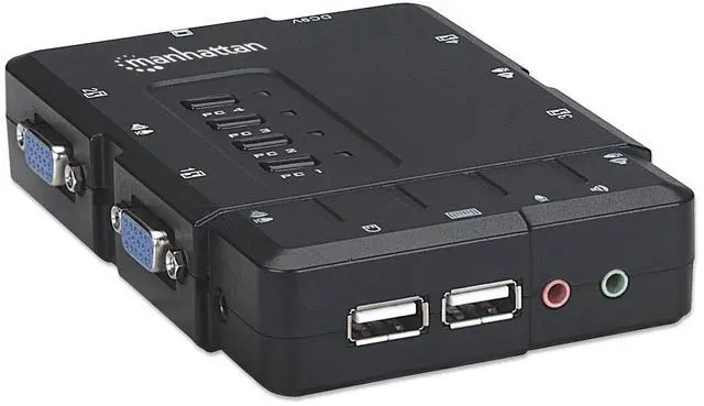 MANHATTAN 4 Port KVM Switch Audio & Microphone Functionality with USB Support for Managing Multimedia Systems on Computer & PC 151269