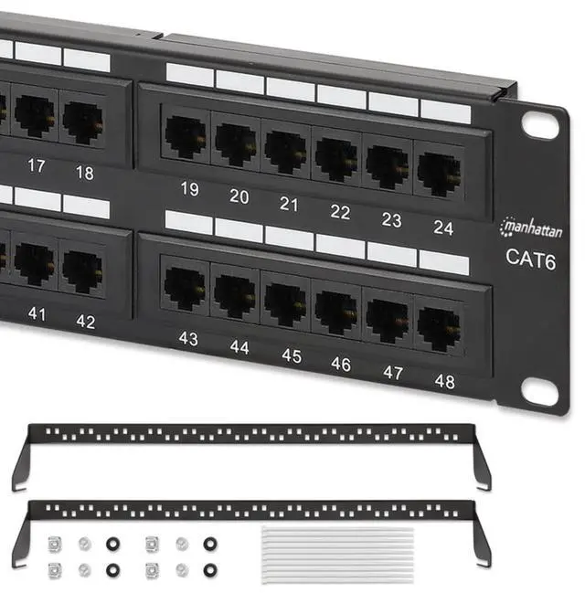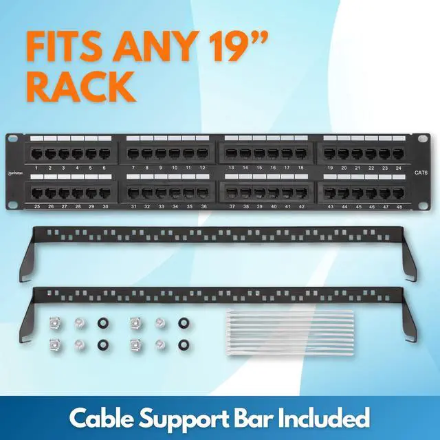 Lifetime Mfg Warranty: Lifetime manufacturer warranty. Package includes 48 Port Patch Panel, Mountable support bar, Installation hardware (screws, nuts, gaskets