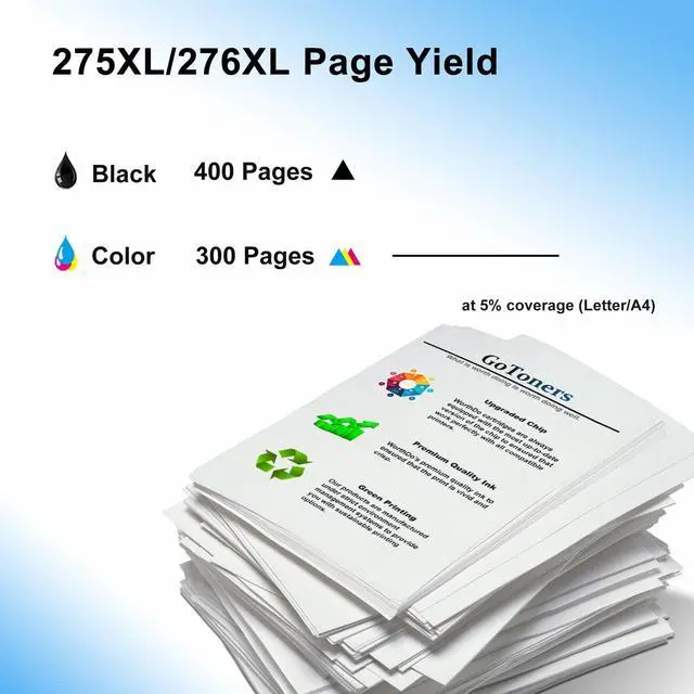 Equipped with upgraded chips: GoToners remanufactured 275xl 276xl combo pack replacement for canon 275 and 276 ink cartridges equipped with the latest upgraded chips that ensure compatibility with supported printers