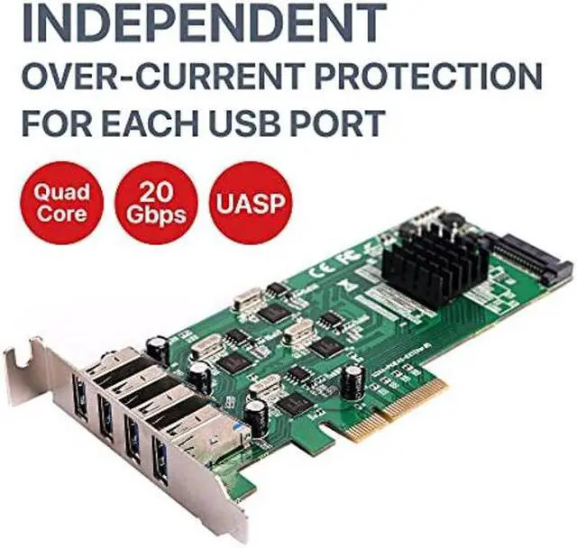 power output: Up to 900mA for each portConnectors: 4x 9-pin USB 3.0 Type A, Female 1x 15-pin SATA power connector