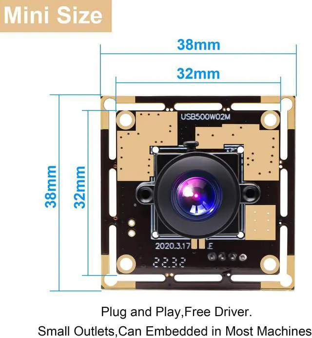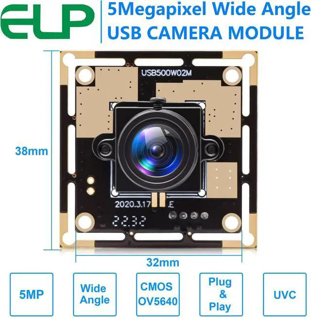 ELP-USB500W02M-L28 is plug&play, free driver 5megapixel 2.8 mm fixed lens USB camera module.