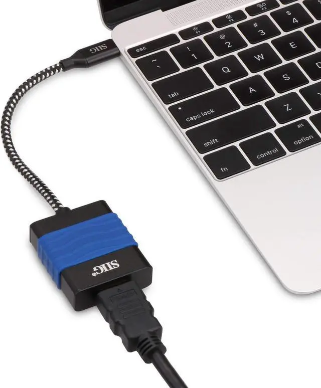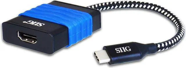 SIIG's USB Type-C to HDMI Cable Adapter - 4Kx2K enables you to connect your USB Type-C equipped computer such as the MacBook (r), Chromebook Pixel (tm), HP and more to a HDMI display. It converts your USB Type-C port (DisplayPort signal) to a HDMI port with 4K UHD resolution, delivering stunning and crystal clear images. It also features triple display modes (Mirror, Extended & Primary) to support various applications such as presentation, entertainment or gaming. This plug-n-play USB Type-C to HDMI adapter is easy to use with no driver installation or external power adapter required.